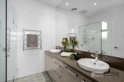 Positioned on the ground level for everyday convenience, the main bedroom includes a walk-in robe and ensuite with dual vanities, offering a comfortable retreat away from the rest of the home. Upstairs, a second living area or rumpus provides valuable separation, especially for families, along with two additional bedrooms with built-in robes and a central bathroom.