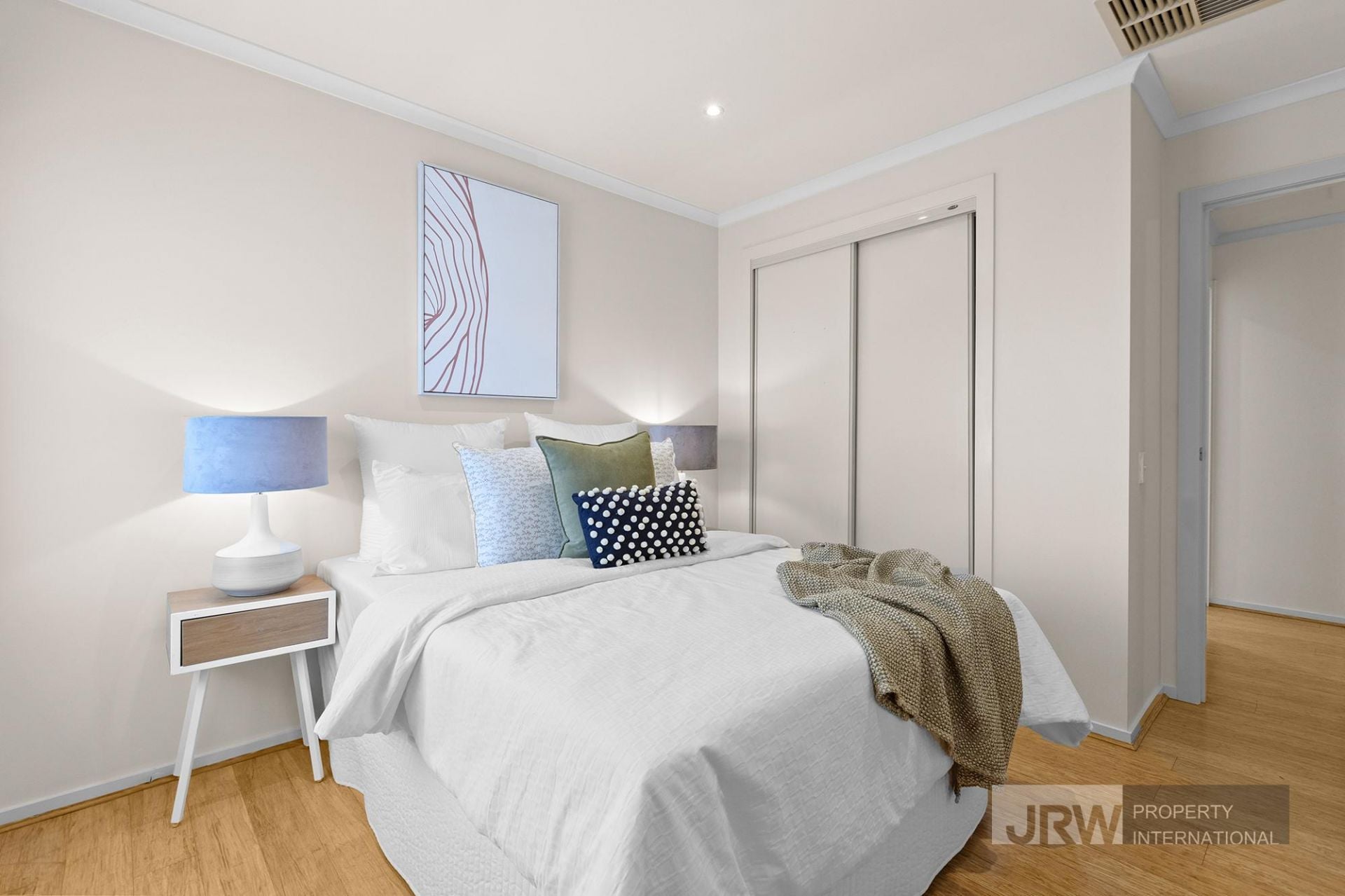 Upstairs, the main bedroom enjoys its own ensuite and peaceful separation from the two rear bedrooms, each with built-in robes and access to a central bathroom. Timber flooring adds warmth underfoot, while ducted heating and split-system cooling keep things comfortable all year round.