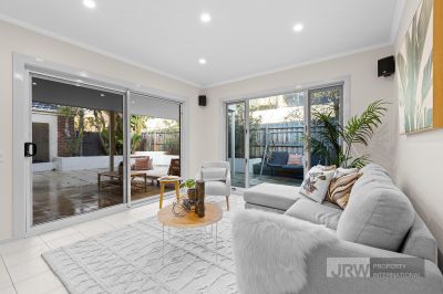 A sleek peninsula kitchen sits proudly in the centre, fitted with quality Asko and Smeg appliances, tiled splashback, and a breakfast bar ideal for casual meals or after-school homework. Adjoining dining and living zones spill out seamlessly to a large undercover outdoor space-ready for summer barbecues or lazy Sunday brunches-framed by a sun-washed backyard perfect for kids or pets to explore. There's room to grow, relax, entertain and unwind in total comfort.