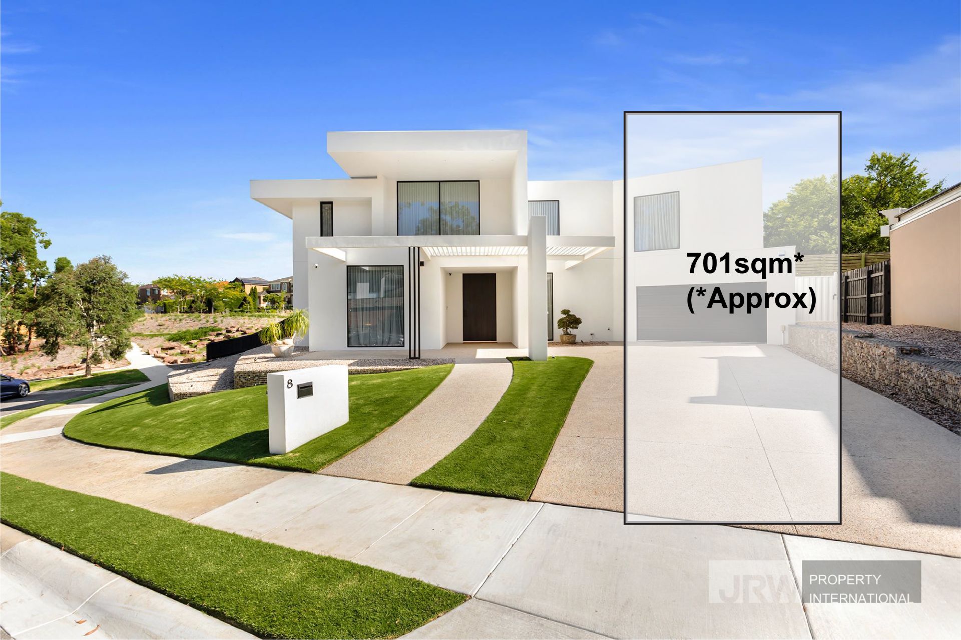 A striking statement of modern minimalist architecture, this grand residence is a masterclass in design, sophistication, and functionality. Defined by clean lines, geometric precision, and a bold monochrome palette, the home's sleek white rendered facade is accented by black-framed floor-to-ceiling windows, effortlessly blending contemporary style with timeless appeal.