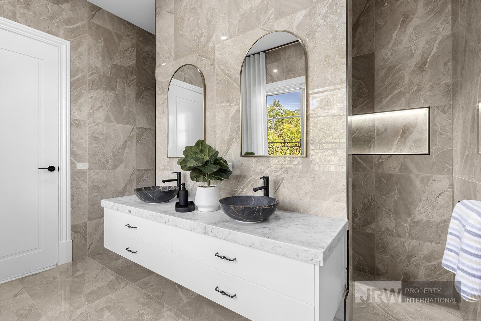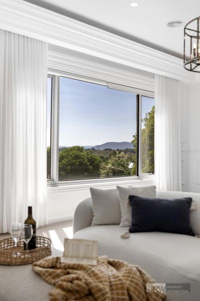 Privately set, the main bedroom offers a true sanctuary with mountain views, its own sitting area, oversized walk-in robe and an opulent dual-vanity ensuite with bath.