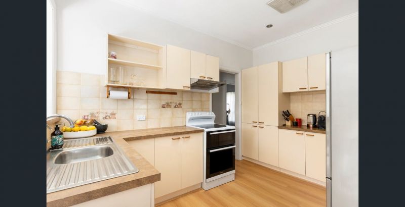 This immaculately presented weatherboard home reflects the exceptional care invested throughout. Polished hardwood floors are complemented by ducted heating, evaporative cooling and a security alarm for year-round comfort and peace of mind. The inviting lounge room features a slate-surrounded open fireplace and flows seamlessly into the L-shaped dining area, creating a warm and welcoming living space. At the heart of the home sits a practical, well-designed kitchen ideal for everyday living.