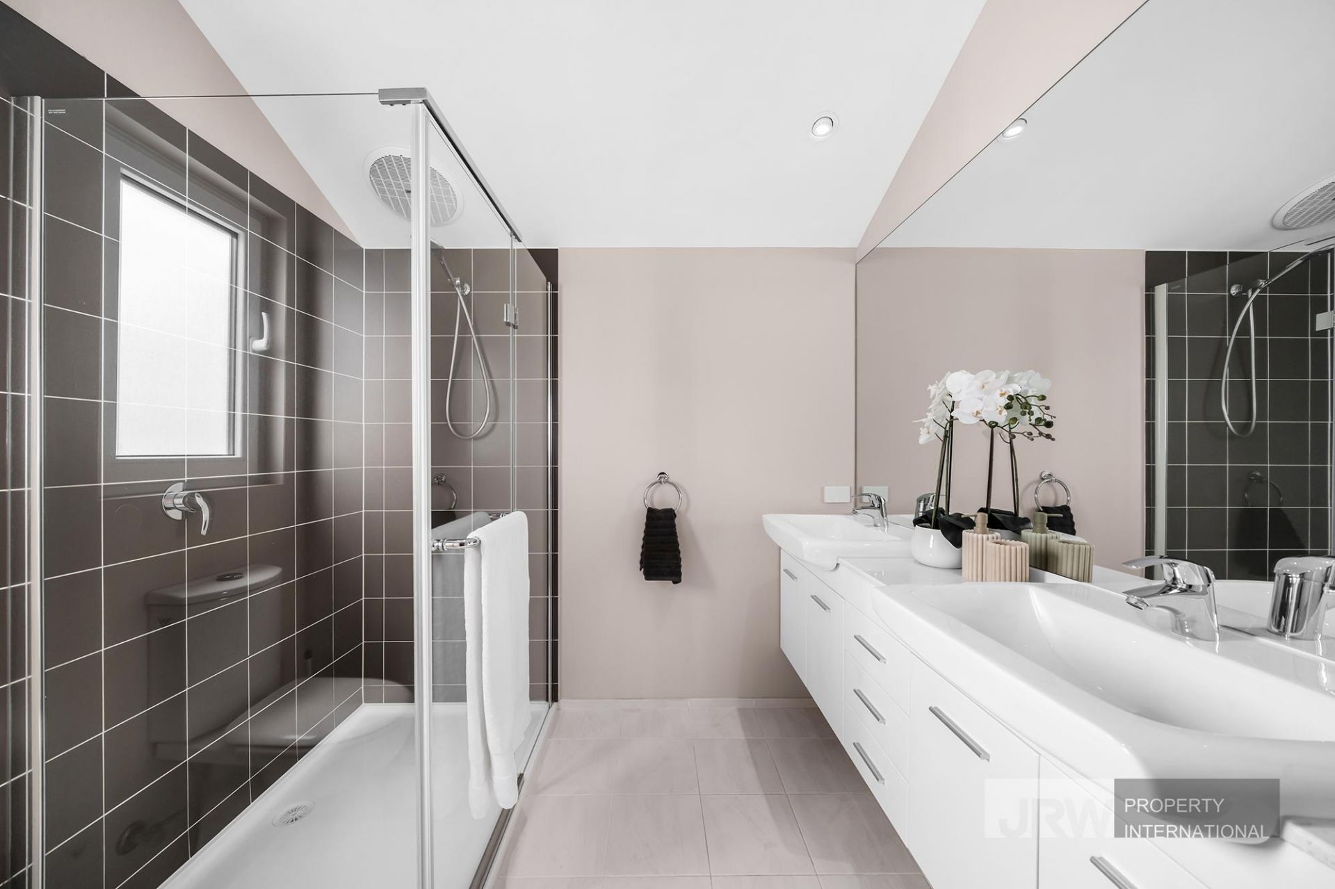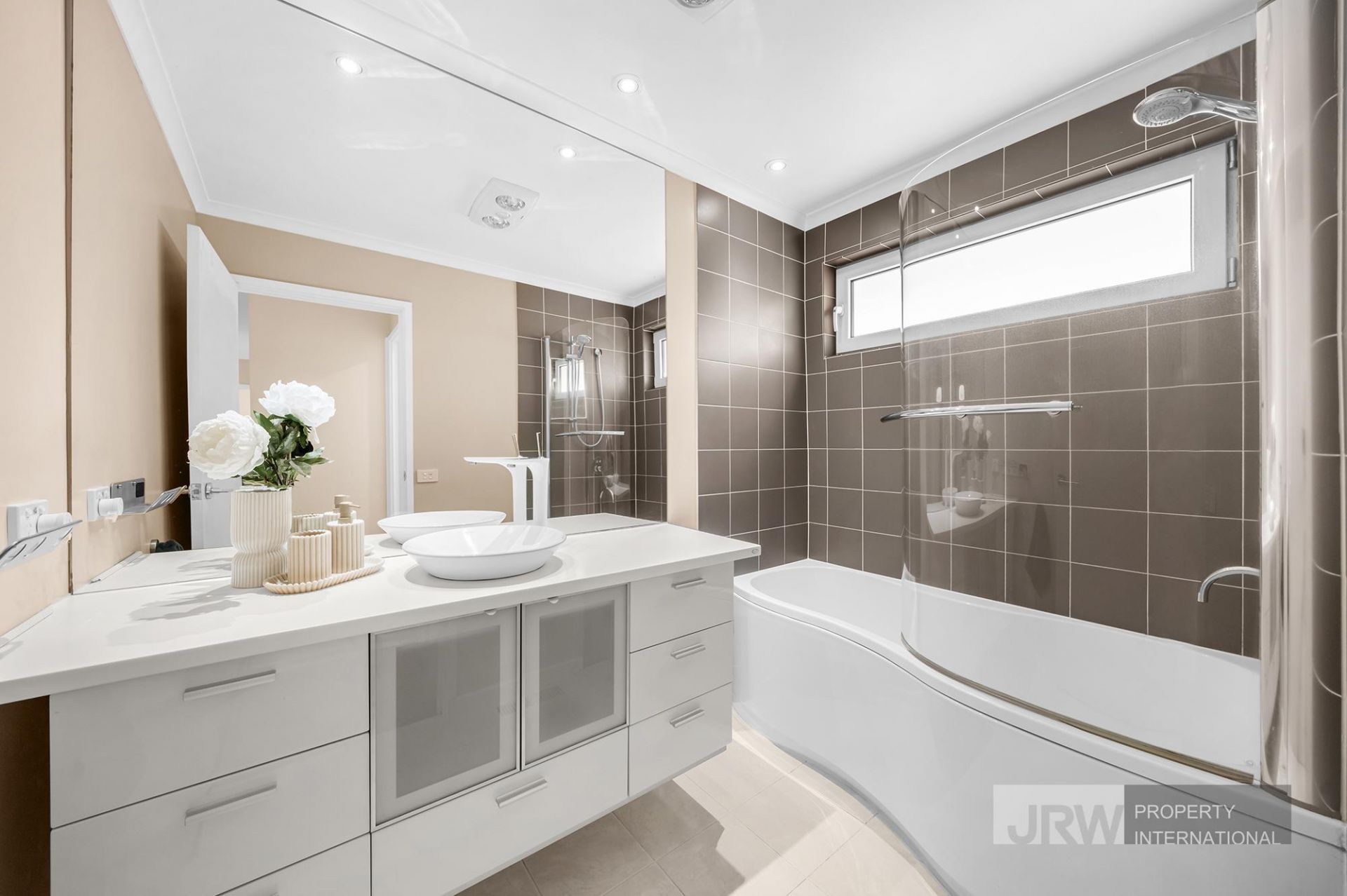 This home offers four generously sized bedrooms, all carpeted for comfort. The main bedroom is a true retreat, boasting a walk-in robe, ensuite with double vanity, and split system air conditioning. One bedroom on the ground floor also features a walk-in robe and ensuite, ideal for guests or multi-generational living. The remaining bedrooms are light-filled and feature built-in or walk-in robes. With three well-appointed bathrooms, including floor-to-ceiling tiles and combined shower/bath options, this home caters perfectly to family living.
