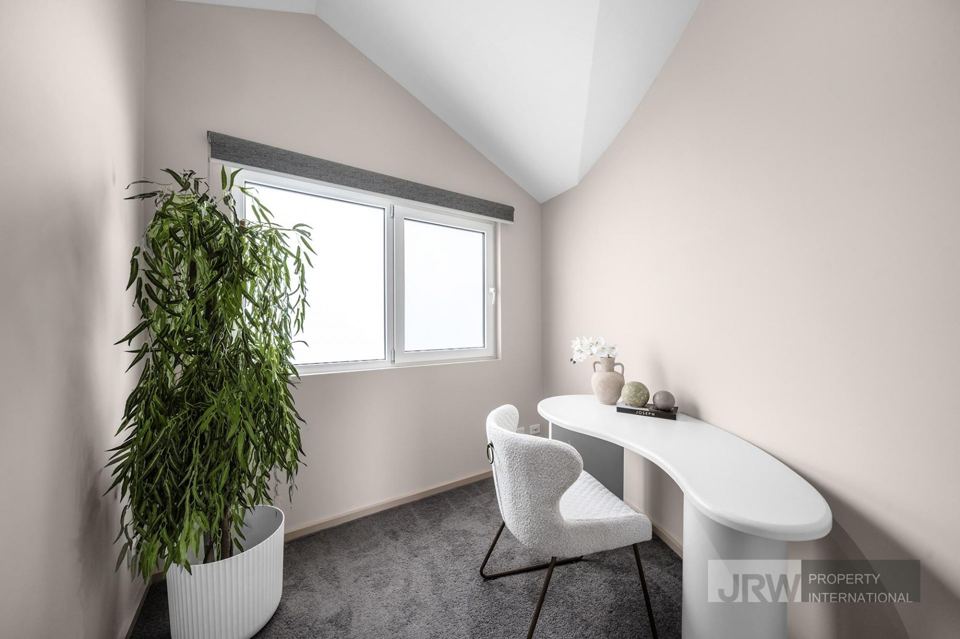 The heart of the home is a beautifully appointed kitchen, featuring stone benchtops, a convenient breakfast bar, and a stylish mirror glass splashback. High-end stainless steel appliances, including a Bosch 4-burner gas stove and oven, and a Fisher & Paykel dishwasher, make this kitchen a chef's delight. The open plan living and dining areas flow seamlessly from the kitchen, with wooden flooring throughout, creating a warm and inviting atmosphere perfect for entertaining or relaxing. The tilt and turn windows and doors allow for easy ventilation and cleaning, while maintaining the home's energy efficiency.