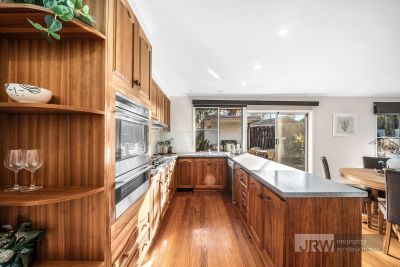 A wide verandah frames the entry, offering a welcoming first impression and a spot to enjoy a morning coffee or evening breeze. Inside, a formal lounge flows through to a dedicated dining area and an open-plan living zone, enhanced by new custom cabinetry providing abundant bespoke storage. The kitchen is filled with natural light and features timber cabinetry, stone benchtops, Bosch appliances, a five-burner gas cooktop, Electrolux wall oven and grill - designed to support everyday cooking and entertaining with ease.