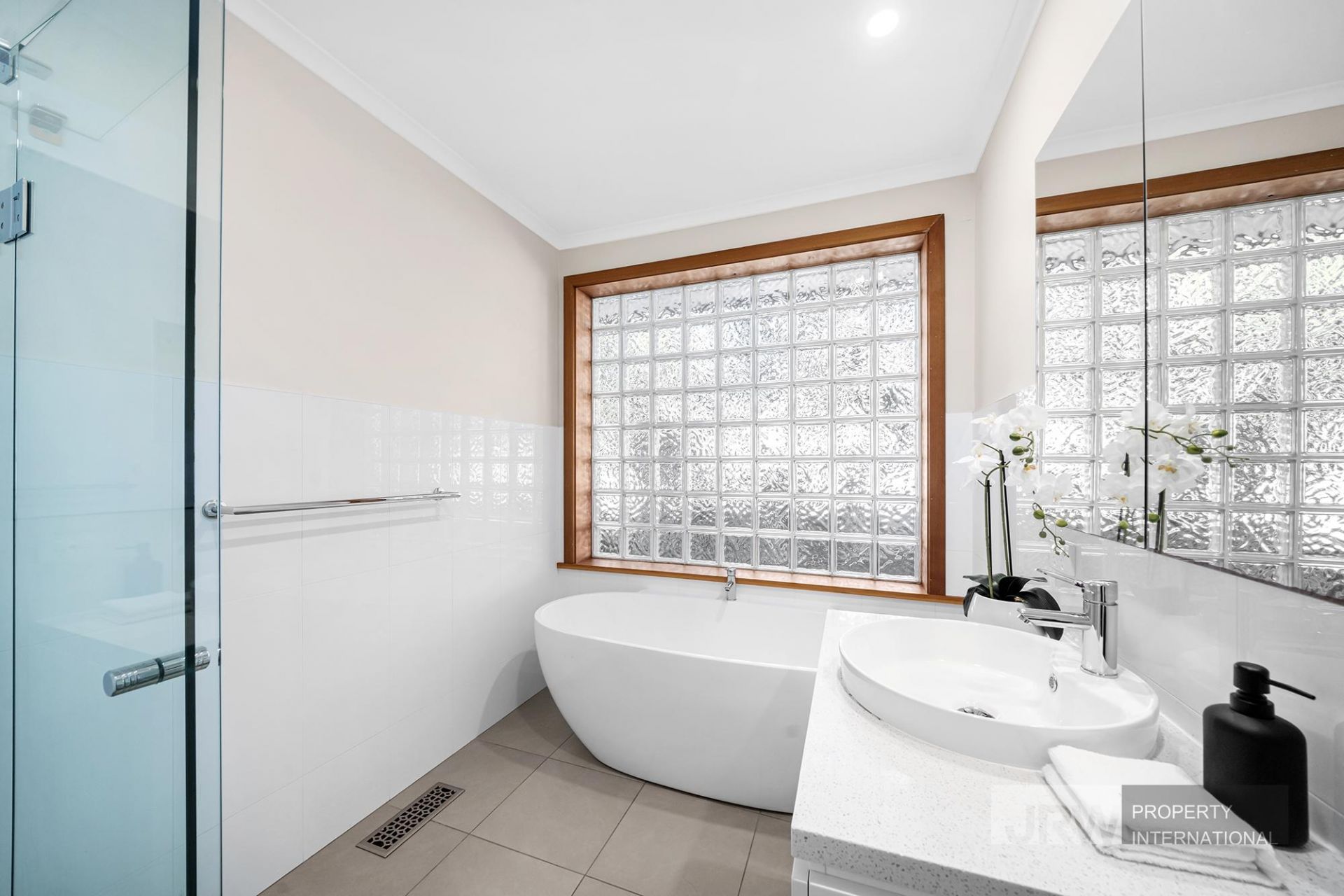 All four bedrooms are quietly positioned at the rear, including a main with walk-in robe, verandah access and sleek ensuite. Both bathrooms have been beautifully renovated with frameless glass showers and a stylish freestanding bathtub in the central bathroom, adding a luxurious feel to daily routines.
